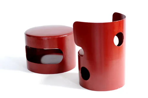 A major moment in Jean-Louis Avril’s career came in 1967, when interior designer Andrée Putman approached him about furnishing a Saint-Tropez clothing store completely in Celloderme. This commission included several lacquered cardboard pieces, referred to as the Container Furniture collection and featured in Elle magazine. Between 1967 and 1973, dozens of Avril’s designs were then picked up and manufactured by Marty L.A.C. The publicization of his work gained him much popularity and opened opportunities to exhibit in the French Pavilion during the Montreal International Exhibition, at the 1968 Milan Triennale, and at the Museum of Decorative Arts in Paris.