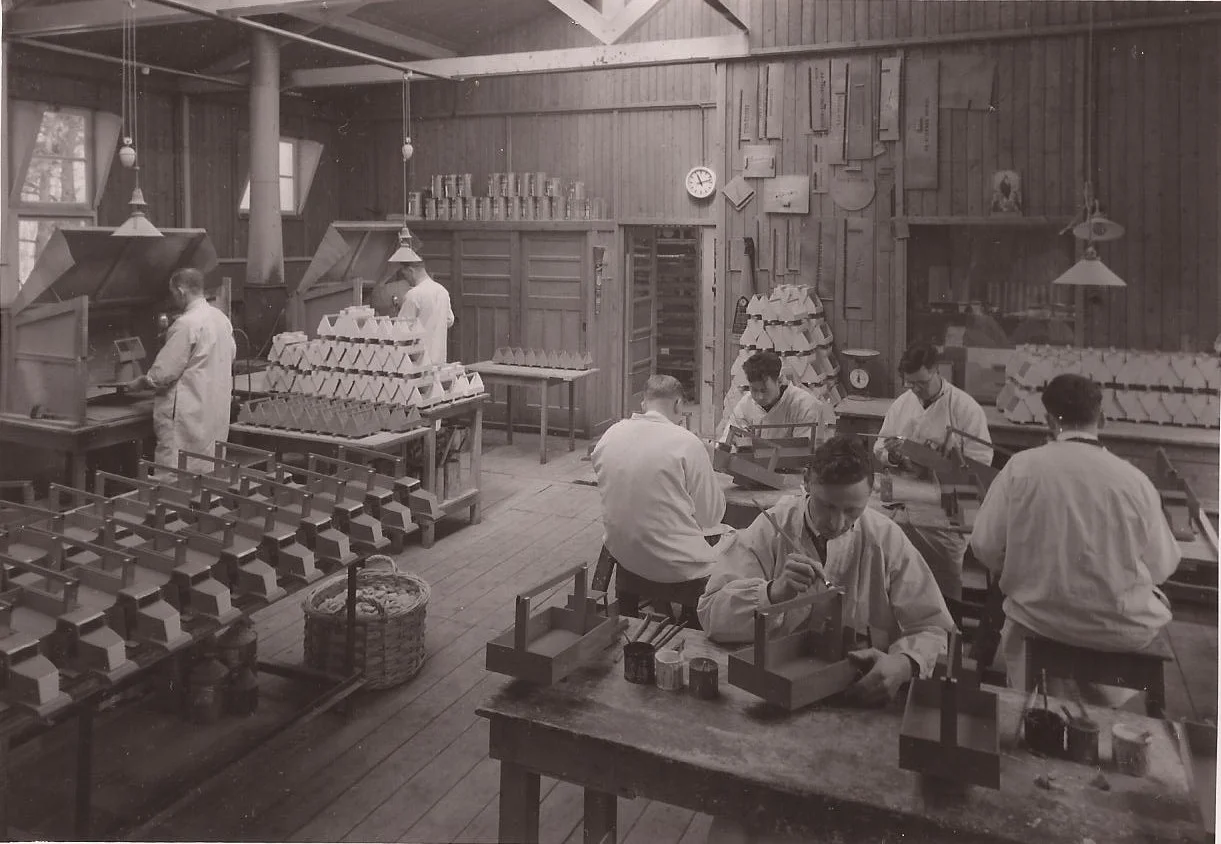 In 1925 Willem Bronkhorst, the medical director of the Dutch tuberculosis sanatorium Berg en Bosch, was seeking an overseer for his recently established physical therapy program. The ADO “work therapy” program was designed to provide patients in the final stages of recovery a woodworking studio where they could regain their strength through light physical activity. When Bronkhorst appointed Jacobus Johannes Josephus (Ko) Verzuu, a construction supervisor in the city of Utrecht and the son of a Dutch rail worker, to the role, it was an unlikely choice. Though it's unclear how they met, Bronkhorst and Verzuu immediately connected over their shared passion for art, which launched Verzuu into a thirty-year career supervising the construction of wooden toys. For Verzuu, the decision to focus on producing toys was an easy one: the work was easily segmented and demanded less physical exertion from the patients, and the machinery and storage needs were minimal. Often described as “full of enthusiasm, brimful of plans, and exhilarated by his work,” Verzuu’s dynamism, idealism, and creativity truly blossomed at the sanatorium.